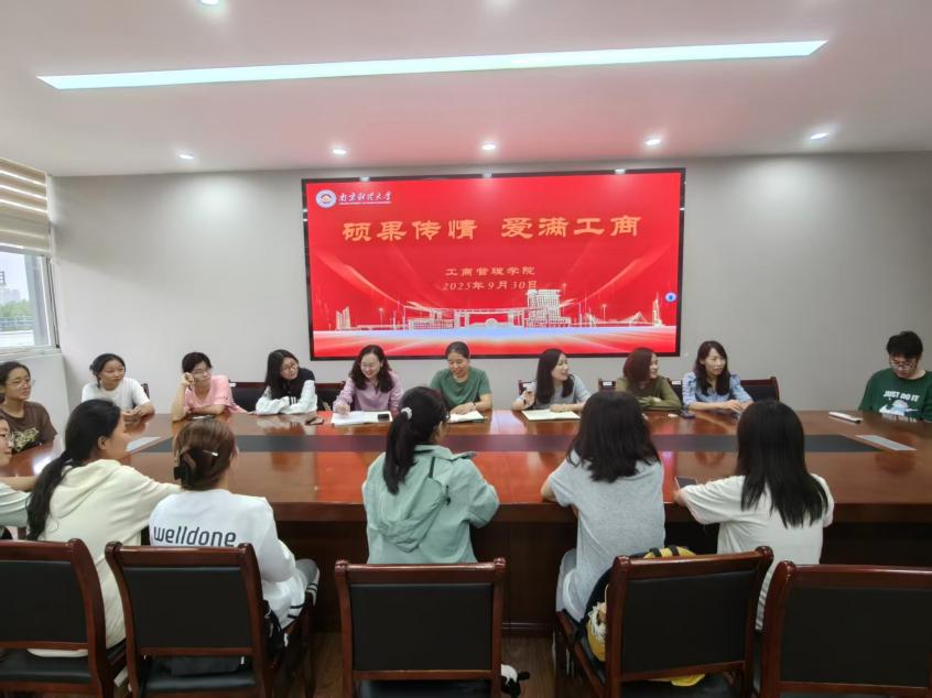 在德济楼408会议室举办“硕果传情,爱满工商”双节主题活动。院党委书记张杰、副书记尹海燕,学工办主任邱祥霞、全体新生辅导员和部分2025级新生代表共同参加本次活动。